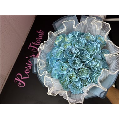 25 spray colored cluster roses (any color) with tulle pearl trim